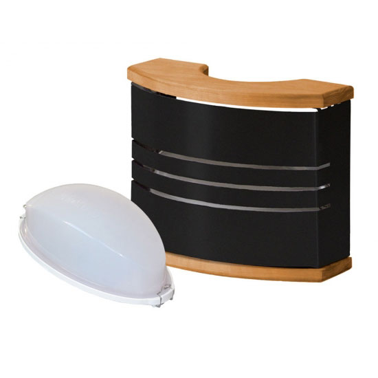 Светильник Harvia разработан специально для сауны. Корпус выполнен из термостойкого пластика, на котором размещен патрон с цоколем E14 и стеклянного плафона. Используется стандартная лампа накаливания максимальной мощностью - 40 Вт. Светильник рассчитан на температуру до 125°C. В качестве декоративного ограждения служит стальной абажур черного цвета с деревянными вставками.